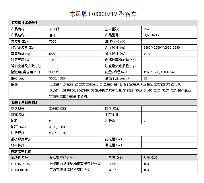 EQ6600ZTV四驅(qū)越野客車圖片,國五排放四驅(qū)10座越野客車價(jià)格,6米四驅(qū)客車多少錢,東風(fēng)四驅(qū)越野客車參數(shù)配置: 1.底盤型號EQ6550KZ5T,發(fā)動機(jī)型號:YC4S140 50 國五排放 2.整車外形尺寸長寬高:(5980×2060×2890)mm 驅(qū)動形式:4×4 東風(fēng)分時(shí)四驅(qū) 3.離合助力,方向助力,斷氣剎,鼓式自動,駕駛區(qū)域空調(diào) 4.車橋?yàn)闁|風(fēng)德納,輪胎為265/70R19.5型越野輪胎,ABS 5.工具箱,前置防裝杠,粘接式推拉玻璃,發(fā)動機(jī)底板防護(hù) 6.鋁花紋地板,中檔皮革座椅10個(gè)+1個(gè)折疊座椅,整車座椅安全帶,手動式外擺門,正副司機(jī)門,后置雙開門,東風(fēng)原廠派恩頂置空調(diào) , 7.窗簾,滅火器兩個(gè),備胎一個(gè),獨(dú)立燃油暖風(fēng)系統(tǒng)帶兩個(gè)雙面王出風(fēng)口 8.其它為EQ6600ZTV型四驅(qū)越野客車標(biāo)配。具體配置參數(shù)參照(附件一)。 成品合格證、全額上戶發(fā)票、隨車工具、隨車文件各一套。