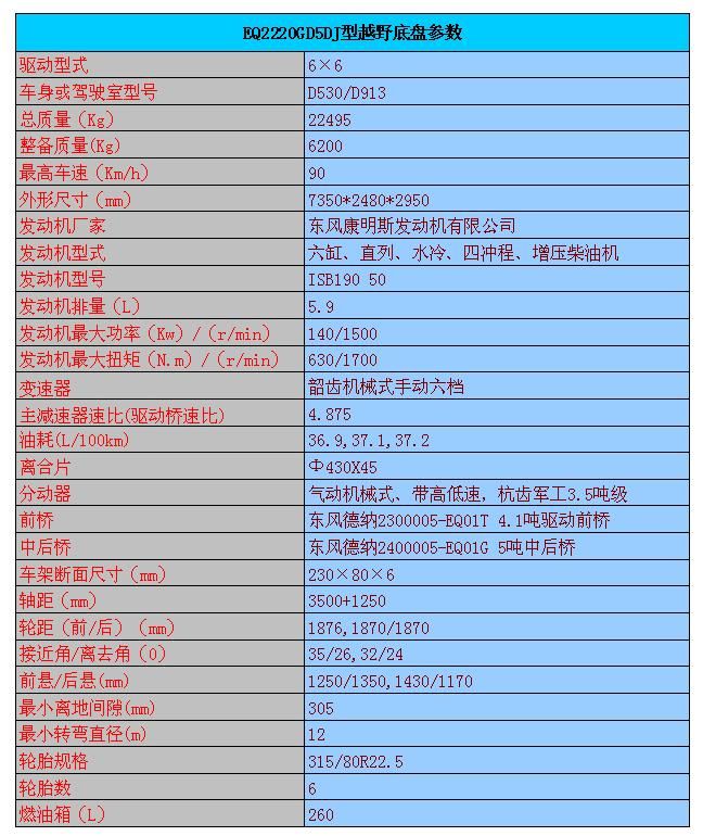 潤知星牌SCS5220XXYEQ型廂式運(yùn)輸車簡介:六驅(qū)越野箱式應(yīng)急保障車采用東風(fēng)EQ2220GD5DJ型越野汽車底盤,東風(fēng)D530寬體一排半駕駛室,帶空調(diào),6*6驅(qū)動(dòng),康明斯190馬力發(fā)動(dòng)機(jī)正宗國五,機(jī)械式六檔變速箱,315/80R22.5 越野輪胎,帶備胎,ABS,標(biāo)準(zhǔn)車廂尺寸:4900×2400×2200(mm)。